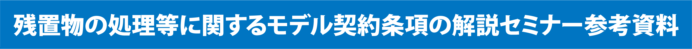 | ■ | 「残置物の処理等に関するモデル契約条項の解説セミナー」のテキストを掲載しました。追加で資料を必要とする方はこちらをご利用ください。ください。 |